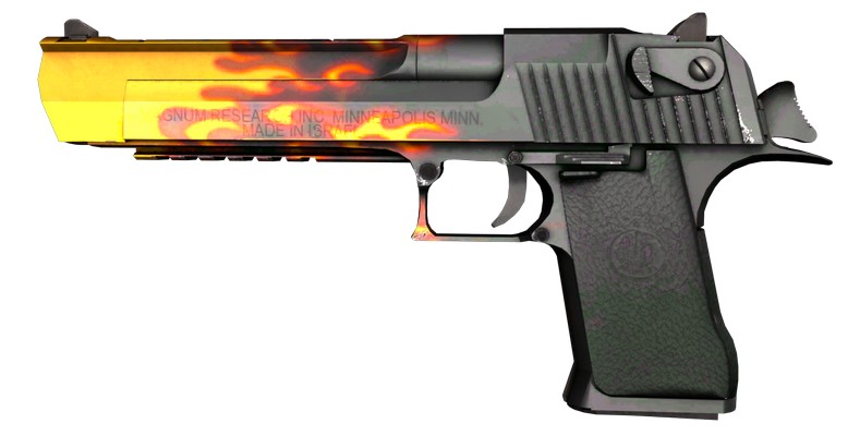 The most beautiful Desert Eagle in CS GO, attracts attention with its colorful, fiery style reminiscent of flames or glowing metal. It has a bright fiery hue, giving the impression of burning or glowing metal. It has a high degree of detail and realism.