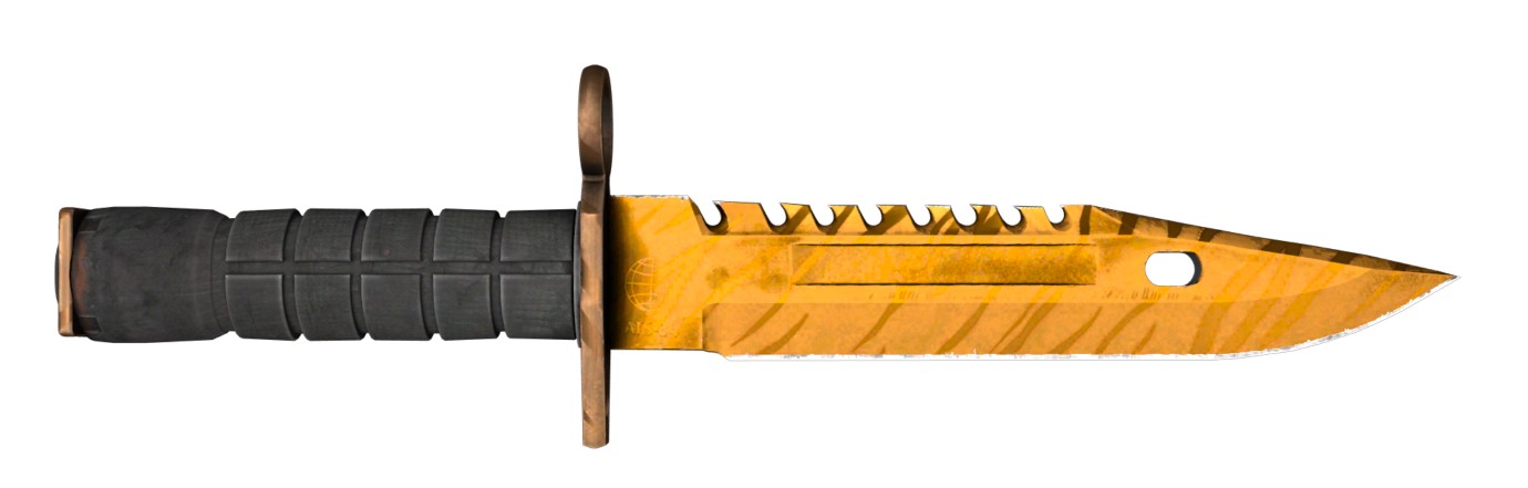 Зуб тигра — модификация классического M9, обладающая следующими особенностями. Зазубренная форма, устрашает золотой нож CS 2. Удобная рукоятка повышает точность управления. Считается мощным, многофункциональным инструментом, предназначенным для экстремальных условий, разнообразных задач.
